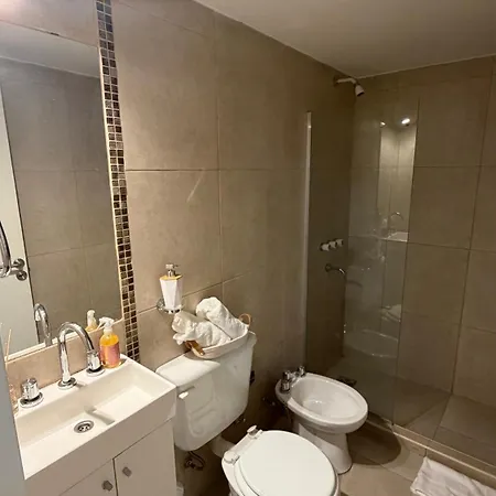 Profitez du confort d'une salle de bain dans ces propriétés Appartement Departamento Moderno A Pasos Del Alto Rosario, équipée d'articles de toilette gratuits et des pantoufles.